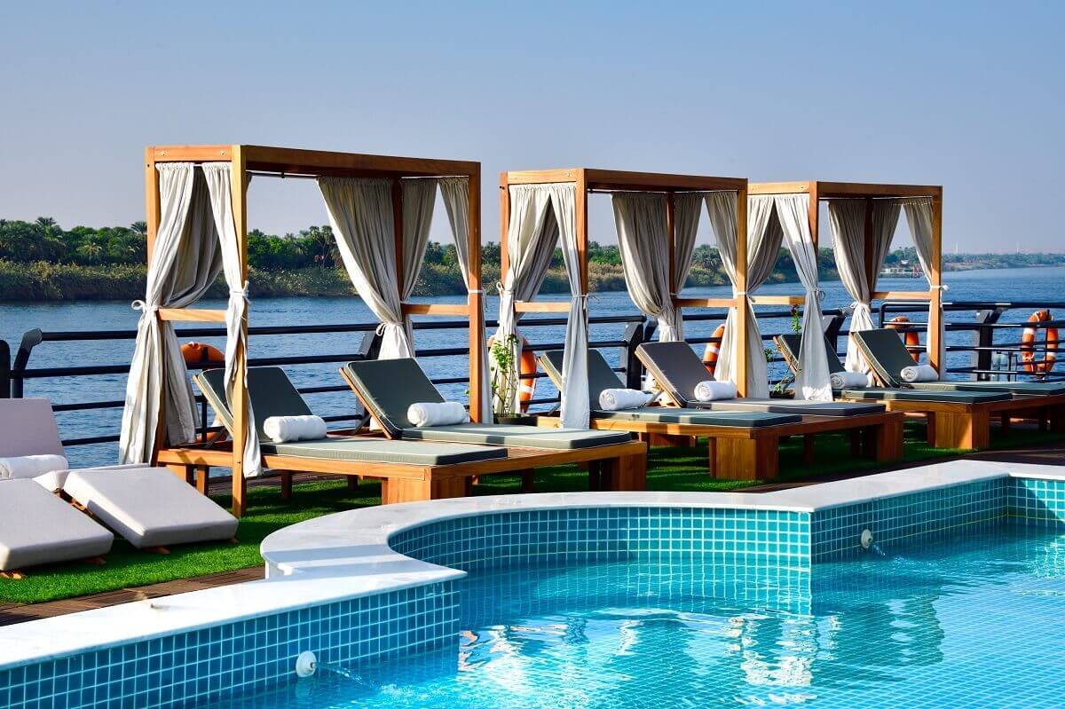 Swimming in the Nile River is generally not recommended due to health and safety concerns, including pollution and strong currents. Most cruises do not allow swimming in the river itself.