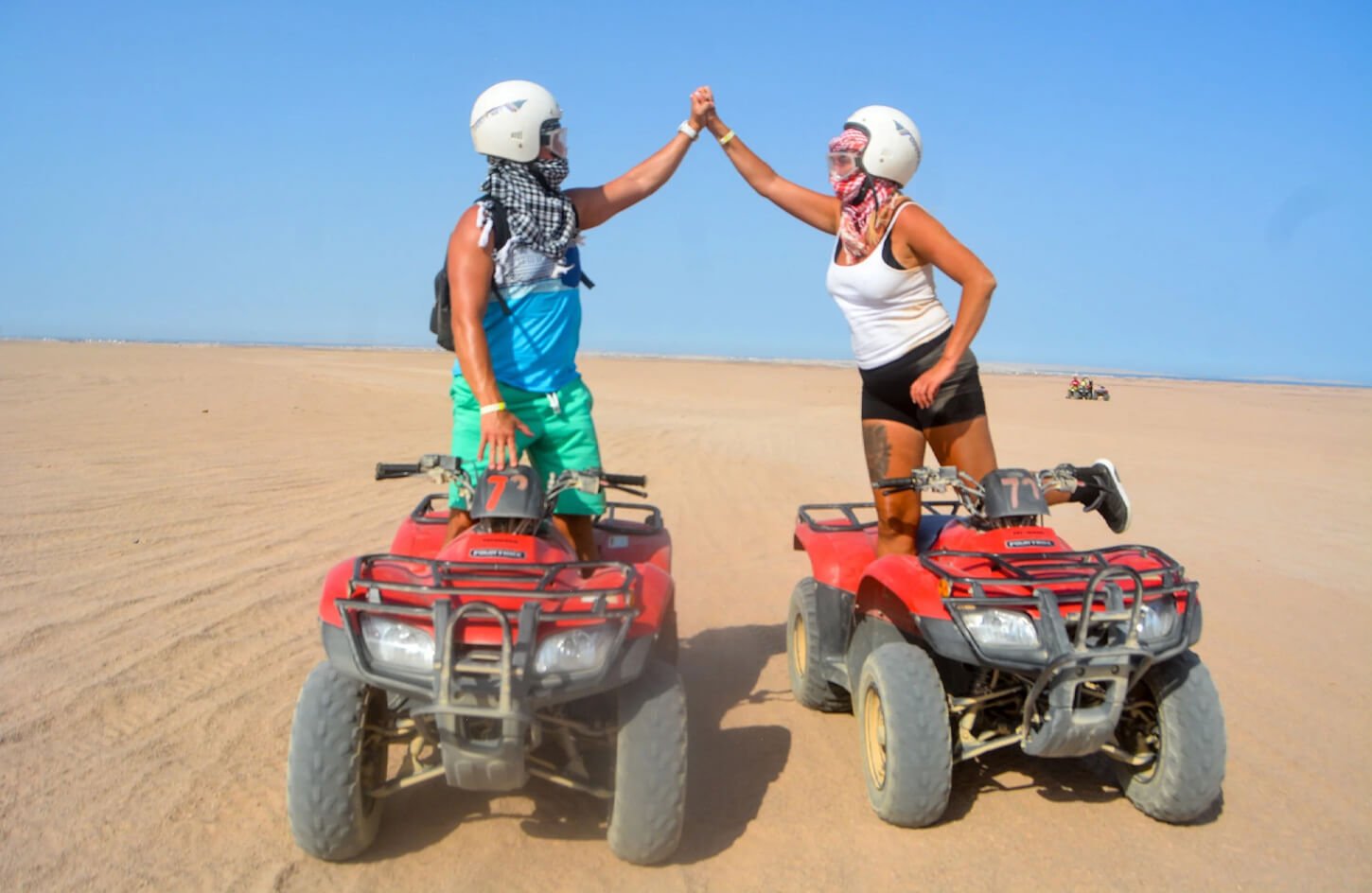 Get ready for an adrenaline-packed Quad Biking Adventure in the Sharm el-Sheikh Desert, where you’ll ride across the stunning, vast sand dunes of the Sinai Peninsula. After a brief safety briefing, hop onto your quad bike and set off on an exciting journey through the desert’s rugged terrain. Feel the thrill as you navigate the shifting sands, racing over dunes and rocky paths while taking in the breathtaking desert landscape. Along the way, you’ll stop at a Bedouin village to learn about their traditional lifestyle and enjoy some refreshing tea or snacks. This exhilarating quad biking experience combines adventure and culture, offering an unforgettable way to explore the desert and its unique beauty. Whether you’re a beginner or an experienced rider, this thrilling ride will make for a perfect desert adventure in Sharm el-Sheikh.