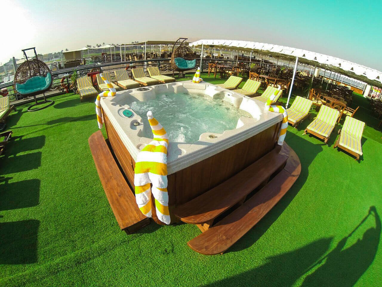 Swimming in the Nile River is generally not recommended due to health and safety concerns, including pollution and strong currents. Most cruises do not allow swimming in the river itself.